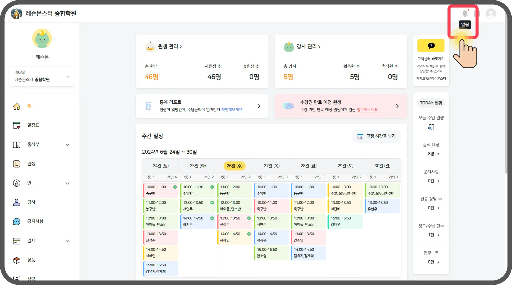 원장/강사님, 우리 학원의 중요한 알림을 확인해 볼까요?