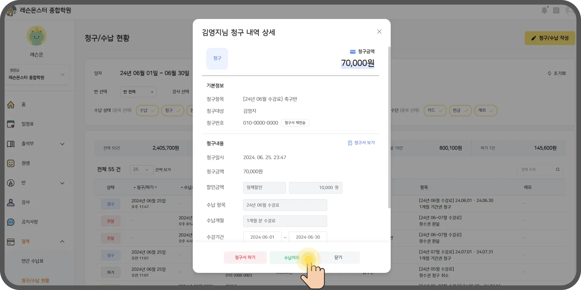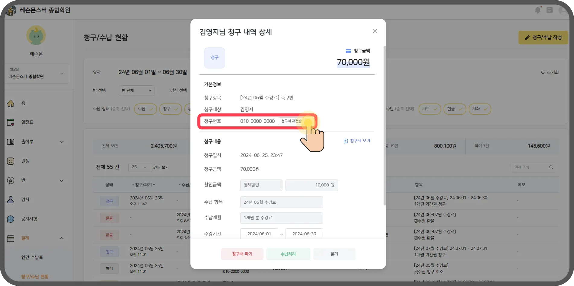 안녕하세요! 학원비 매번 요청하기 번거로우셨죠?