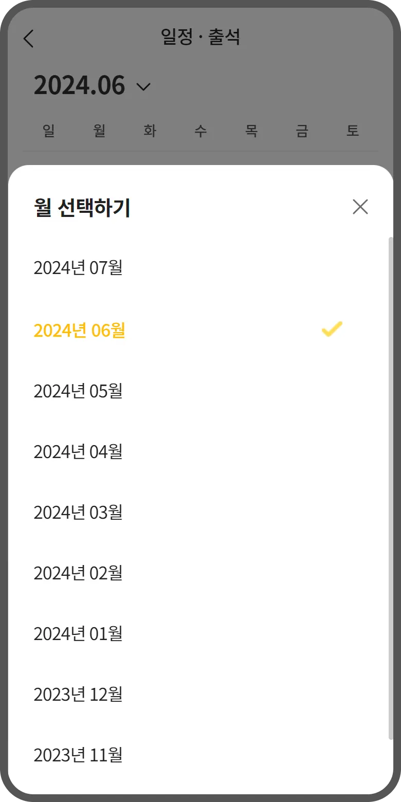 월을 클릭 해 다른 월도 볼 수 있습니다.