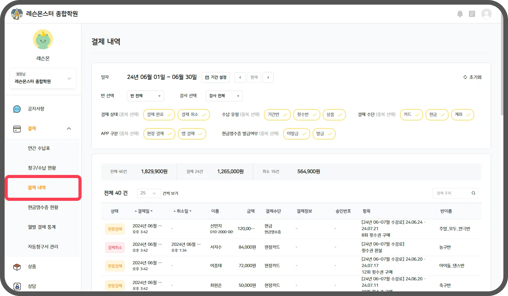 원장/강사님, 가장 중요한 결제를 알아볼까요?